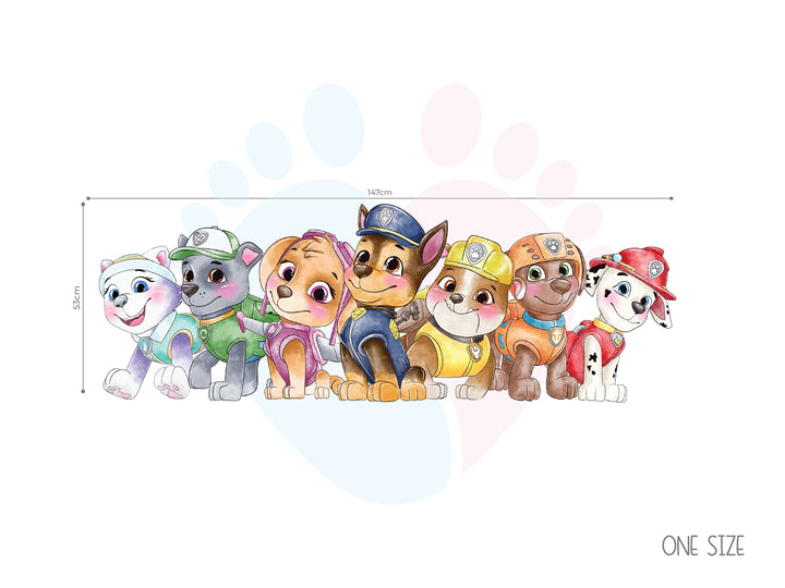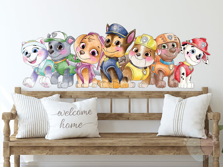 Custom Above Bed Character Decal Create an imaginative scene above your child’s bed, Window or Door with our Custom Above Bed Character Design. Featuring a lineup of cheerful, adventure ready pups and elements...