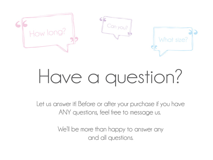 All products are made to order. If you have any custom requests or want anything changed contact us!